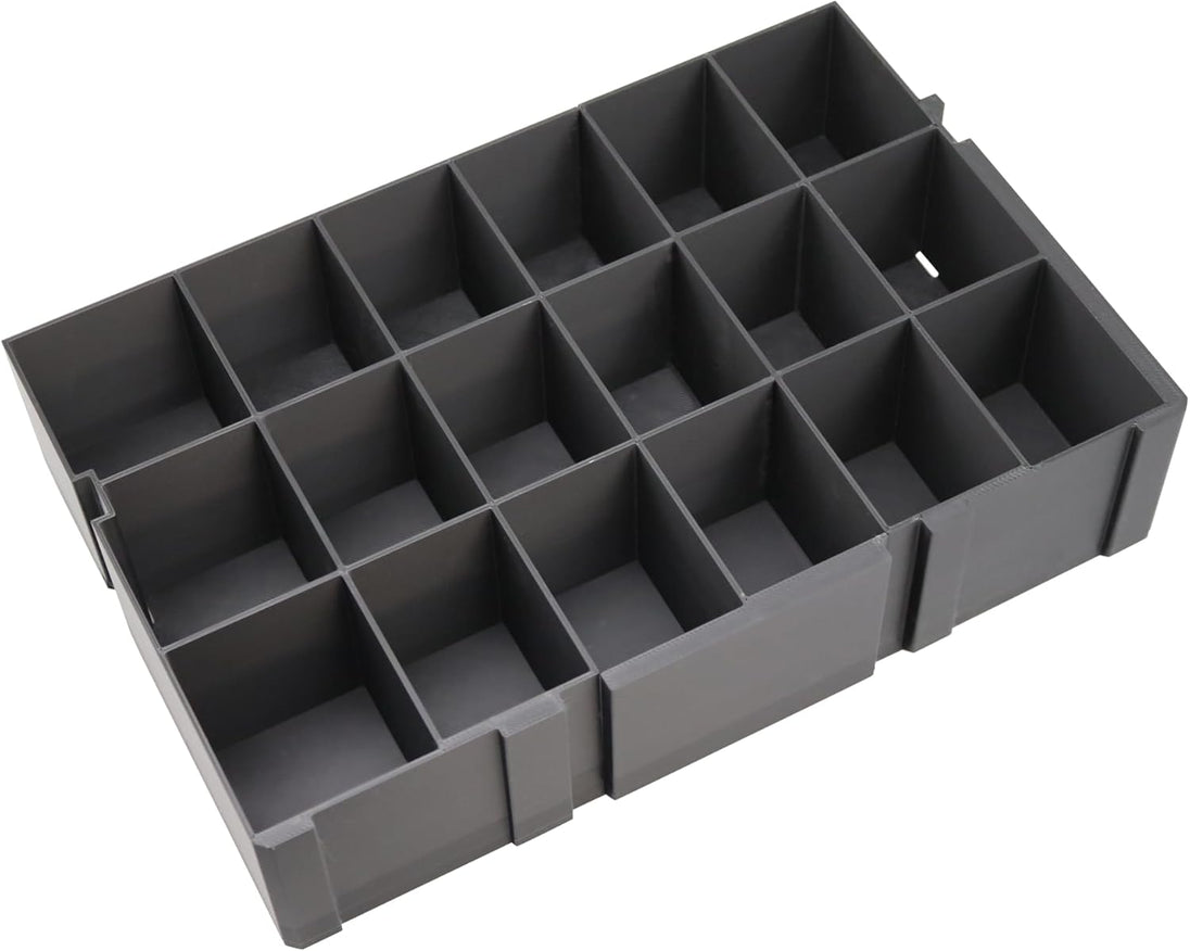 De inserts zijn gemaakt van hoogwaardig PLA+ materiaal voor extra stevigheid en een professionele afwerking. Of het nu gaat om boormachines, multitools, accu’s of accessoires – alles blijft netjes op zijn plek tijdens transport en gebruik.